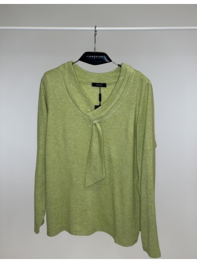 Jersey de punto ligero con escote en pico y detalle de lazo en el delantero que aporta un toque distintivo. De manga larga y corte recto, combina comodidad y estilo en una prenda versátil perfecta para múltiples ocasiones.