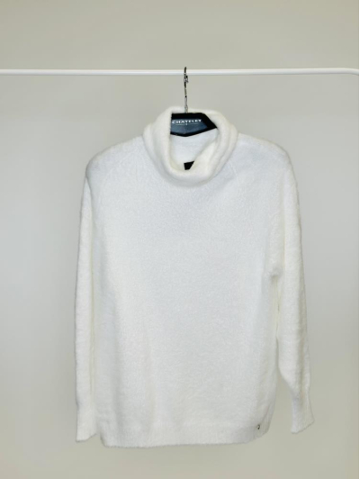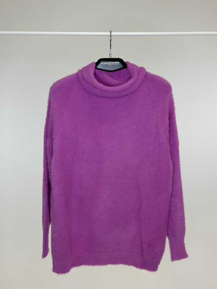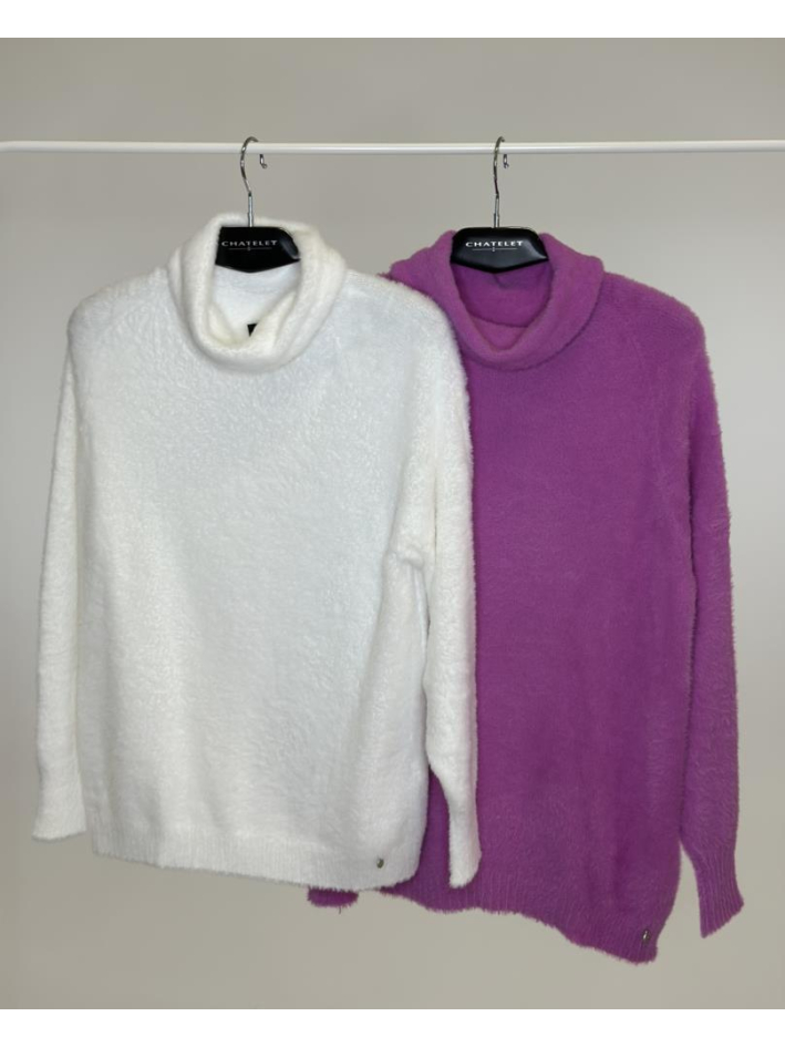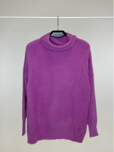 Jersey de hilo peluche con cuello vuelto, de tacto muy suave y cálido, con un diseño sencillo y recto que lo hace ideal para outfits de invierno cómodos y elegantes.
