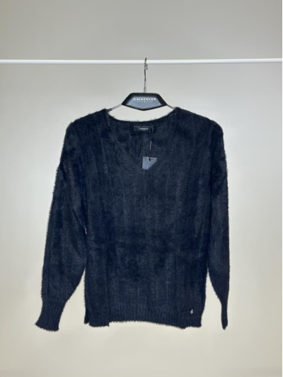 Este jersey de hilo peluche destaca por su suavidad y tacto acogedor, convirtiéndose en una prenda ideal para los meses más fríos. Con su escote en pico y corte recto, aporta un aire femenino y actual sin perder comodidad. Una pieza versátil que se adapta tanto a estilismos relajados como a looks más cuidados, perfecta para convertirse en un imprescindible de temporada.