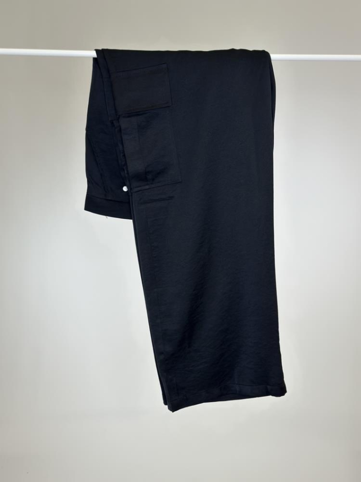 Pantalón de raso con diseño cargo, que combina la fluidez y el brillo satinado con un estilo desenfadado y moderno. Sus bolsillos laterales aportan un toque práctico y actual, mientras que la caída ligera del tejido lo hace cómodo y sofisticado a la vez. Ideal para crear looks urbanos con un punto elegante.