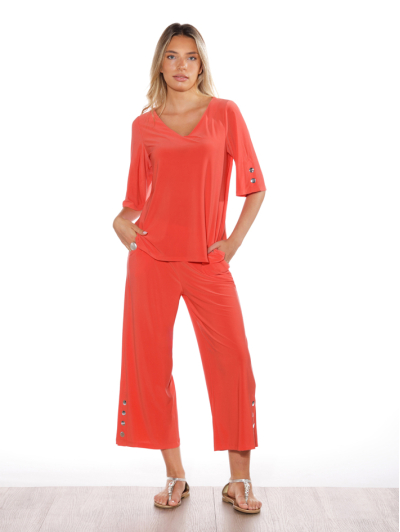 Camiseta de manga francesa en tejido fluido y suave que se adapta con naturalidad a la silueta. Su escote en pico estiliza el cuello y aporta un toque femenino, mientras que el corte recto garantiza comodidad y movimiento. Destacan los detalles decorativos en las mangas, que añaden un sutil acento moderno y diferencial. Una prenda luminosa y versátil, perfecta para crear conjuntos coordinados o da